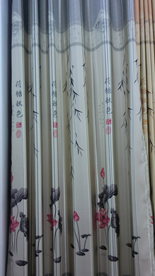 長(cháng)期供應 荷塘月色印花黑絲全遮光窗簾布藝家紡