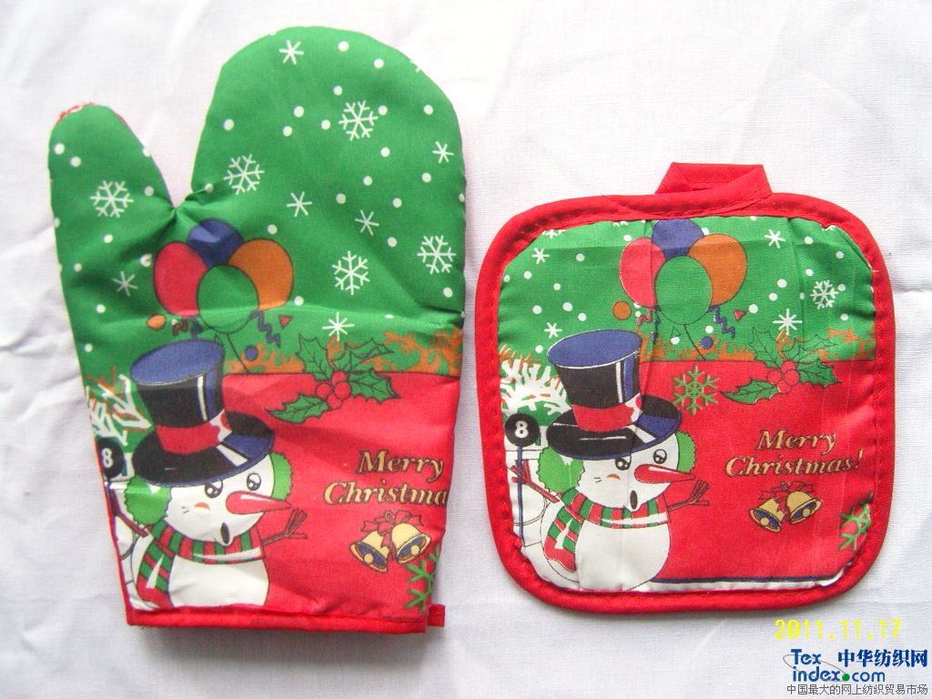 圣誕廚房?jì)杉祝菏痔?6x27cm + 隔熱墊17x17cm