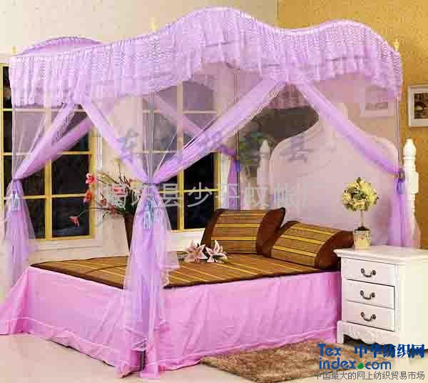 宮廷蚊帳,采用優(yōu)質(zhì)不銹鋼支架,有白色、粉色、紫色及米黃四種顏色。