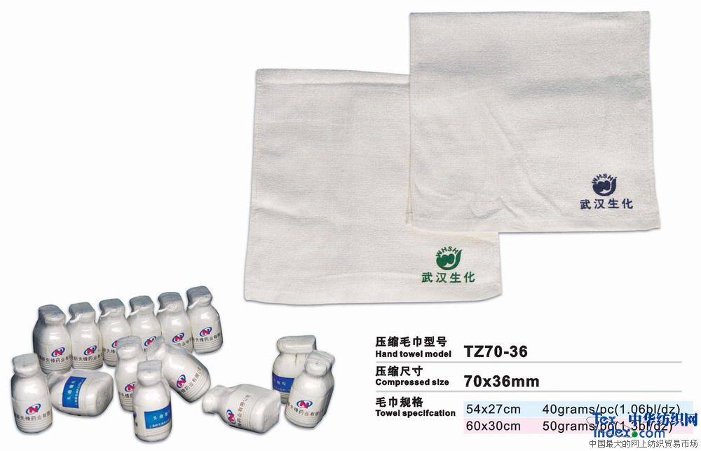 高級環(huán)保壓縮毛巾是二十一世紀的高科技成果、采用100%純棉經(jīng)高溫壓處理而成的新一代產(chǎn)品。放入水中浸片刻即可張開(kāi)使用。本產(chǎn)品新奇獨特,干凈衛生,產(chǎn)品企業(yè)形象宣傳極具效力。廣泛用于廣告宣傳界、酒店、旅游公司等。