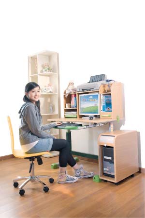 名家具展展出的“奪標”、“愛(ài)王”品牌家具的升降電腦桌,便是一款頗受歡迎的新品。這款奪標安全手搖或提拉升降計算機桌,配備有文具收納功能之鍵盤(pán)架、電線(xiàn)集線(xiàn)槽、四個(gè)桌腳微調高度等功能;而多功能書(shū)架則可在3秒內變身計算機架,還有可上下調整的層板、左右微調的隔書(shū)板、旋轉的文具盒、活動(dòng)的讀書(shū)板、防傾倒的固定夾、多片CD架、高明流護眼燈具等不一而足,條理清晰而便捷使用,考慮地無(wú)微不至卻適合孩子的生理機能,不失為孩子們學(xué)習的一個(gè)好平臺。