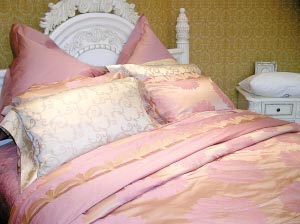 碎花、田園風(fēng)格都屬于淑女系列。如果你的臥室裝潢屬于歐式的宮廷格調,那么一款名為“愷撒大帝”的半棉半蠶絲八件套就相當夠氣派了。另外,雅蘭床上用品的專(zhuān)業(yè)人士還傳授了如何洗滌蠶絲床品的技巧。蠶絲制品的光澤與順滑常在清洗過(guò)后變得黯然失色。但只要在清洗時(shí)避免用有漂白功效的洗滌用品,改用質(zhì)量好的二合一洗發(fā)水,清洗完以后的蠶絲制品可依舊保持光澤。另外,最好不要選擇純蠶絲的床品,因為蠶絲矜貴,容易變皺,所以最好選擇半棉半蠶絲的床品,更易于打理。