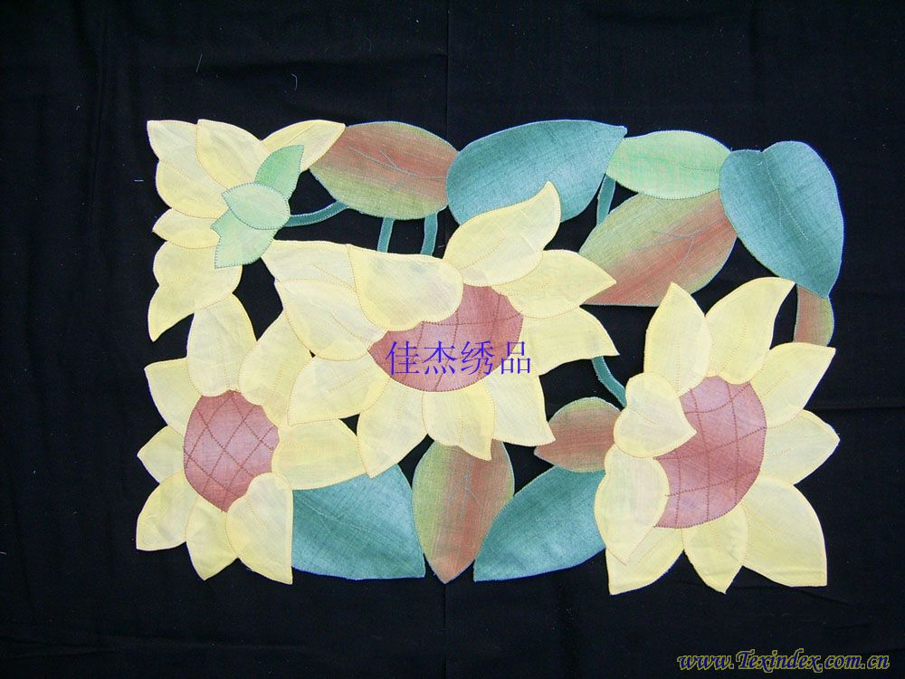 規格:33*48/30*45/15*30 纖維材料:100%滌 品種:補花盤(pán)墊 織制方法:補繡 工藝特點(diǎn):手工 產(chǎn)地:山東 淄博