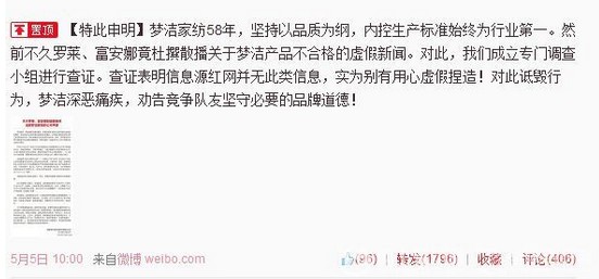 富安娜官方就夢(mèng)潔"假新聞"事件發(fā)嚴正聲明